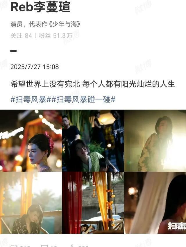 缉毒剧《扫毒风暴》央视正式收官,继于文文左小青发文告别后,李蔓瑄也发文告别该剧。 李蔓瑄在《扫毒风暴》中饰演卢少骅第三任妻子马英子。